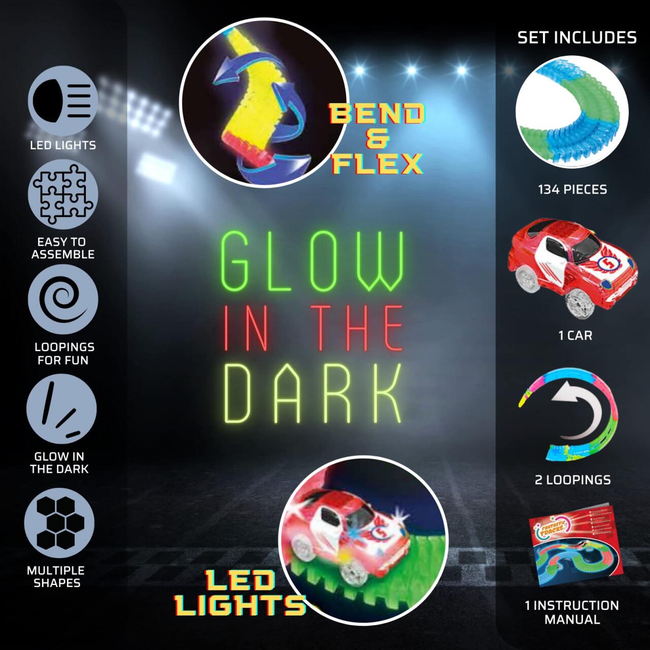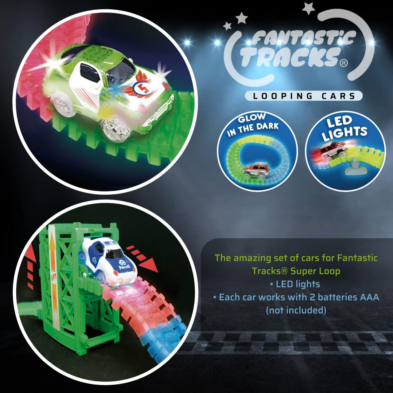 O Fantastic Tracks Super Loop é muito mais que um circuito – é um parque de diversões portátil! Com 134 peças flexíveis glow-in-the-dark, 2 loopings desafiadores e carro com LED turbo, transforma quartos em autódromos de outro mundo quando as luzes se apagam.